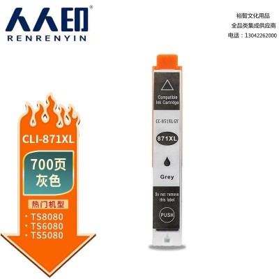 首页 > 办公用品 > 墨水盒 > 人人印 CLI-871XL灰色墨盒适用佳能MG5780 MG6880 MG7700 MG7780 TS5080 TS6080 TS9080打印机墨粉盒 SKU:yzwhyp305962