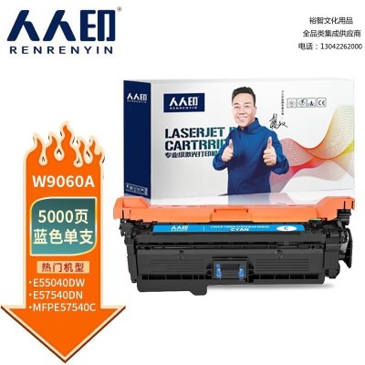 人人印 W9060适用惠普HP E55040dw硒鼓MFP E57540dn/MFPE57540C彩粉盒 蓝色W9060墨粉盒 SKU:lfhc500148