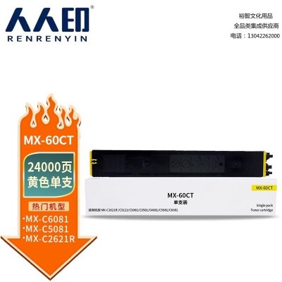 首页 > 办公用品 > 墨粉盒 > 人人印 MX-60CT粉盒黄色 适用夏普SHARP MX-C2621R C3121R C3081R C3581R C4081R 5081D 6081D SKU:yzwhyp306109