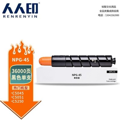 首页 > 办公用品 > 墨粉盒 > 人人印 NPG-45黑色粉盒适用佳能Canon IR-ADV C5045墨粉盒 C5051碳粉盒 C5250硒鼓 C5255复印机 高容量 SKU:yzwhyp306124