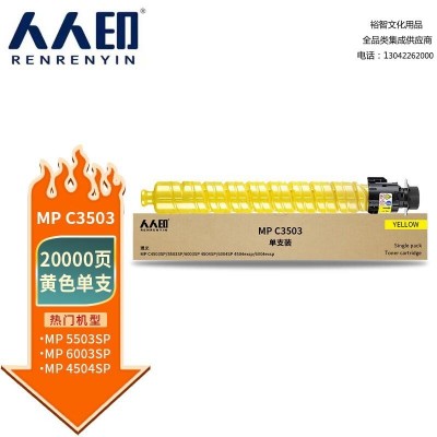 首页 > 办公用品 > 墨粉盒 > 人人印 MPC3503C黄色粉盒适用理光MP C3003SP/C3503SP/C3004SP复印机碳粉C3504SP墨粉筒C3004exsp/c3504exsp SKU:yzwhyp306161