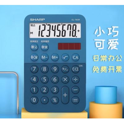 夏普(SHARP)EL-760R-AX 迷你便携8位双重电源电子计算器 蓝色
