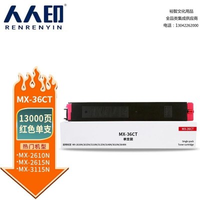 首页 > 办公用品 > 墨粉盒 > 人人印 MX-36CT红色粉盒 适用夏普SHARP MX-2618NC 3118NC 3618NC 2648NC 3148NC 3648NC墨盒 墨粉盒 碳粉 SKU:yzwhyp306267