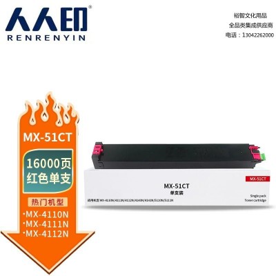 首页 > 办公用品 > 墨粉盒 > 人人印 MX-51CT红色粉盒 适用夏普SHARP mx-4110n 4111n 4112n 4140n 4141n 4101n 5110n 5111n 5112n墨盒 SKU:yzwhyp306276
