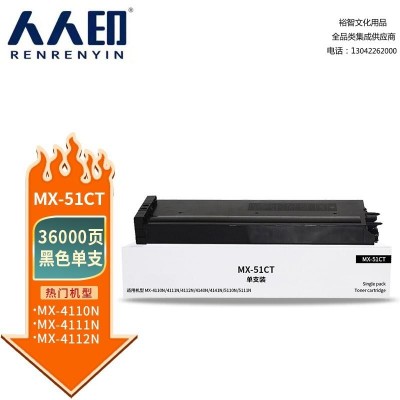 首页 > 办公用品 > 墨粉盒 > 人人印 MX-51CT黑色粉盒 适用夏普SHARP mx-4110n 4111n 4112n 4140n 4141n 4101n 5110n 5111n 5112n墨盒 SKU:yzwhyp306278