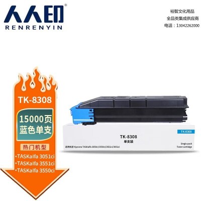 首页 > 办公用品 > 墨粉盒 > 人人印 TK8308粉盒蓝色 适用京瓷Kyocera TASKalfa 3050ci 3550 3051 3551复印机墨粉盒 碳粉 粉筒 墨盒 SKU:yzwhyp306292