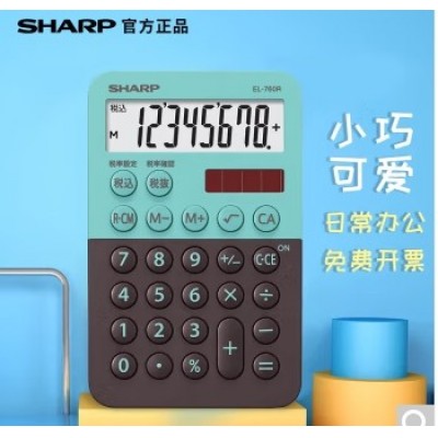 夏普(SHARP)EL-760R-GX 迷你便携8位双重电源电子计算器 绿色