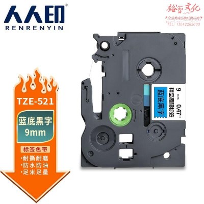 人人印标签带 9mm蓝底黑字TZe-521标签色带 适用兄弟标签打印机brother标签打印纸 AZE-521/WZE-521 SKU:lfhc500286