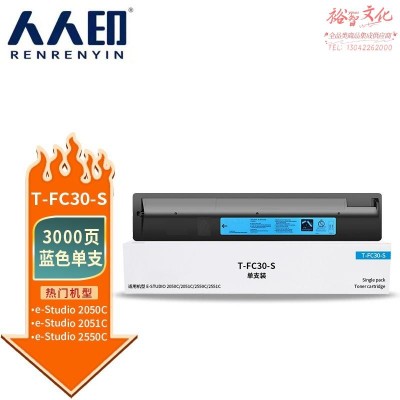 首页 > 办公用品 > 墨粉盒 > 人人印 T-FC30-S蓝色粉盒 适用东芝TOSHIBA e-Studio 2050C 2051C 2550C 2551C打印机墨盒 碳粉盒 墨粉盒 SKU:yzwhyp306366