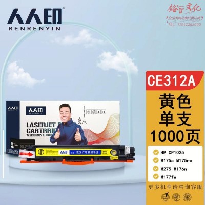 首页 > 办公用品 > 墨粉盒 > 人人印 CE312A黄色硒鼓 适用惠普HP CP1025 M175a M175nw M275 M176n M177fw 打印机硒鼓 SKU:yzwhyp306405