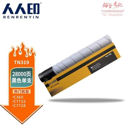 首页 > 办公用品 > 墨粉盒 > 人人印 TN319/TN216黑色粉盒适用柯美C360碳粉C7722 C7728柯尼卡美能达C226 C280 C220复印机墨盒打印机 SKU:yzwhyp306460