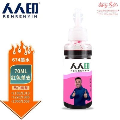 人人印 T674墨水适用爱普生L805 850 1800 810 801 360 101墨仓式打印机 红色 SKU:yzwhyp306522