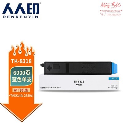 人人印 TK-8318蓝色粉盒 适用京瓷Kyocera TASKalfa 2550ci打印机复印机墨盒 墨粉盒 碳粉盒 墨粉 碳粉 SKU:lfhc500536