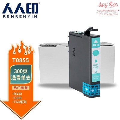 人人印 T0855墨盒淡青(适用爱普生R330墨盒T60 EPSON 1390打印机墨盒 85N T0851N T0856N) SKU:yzwhyp306568