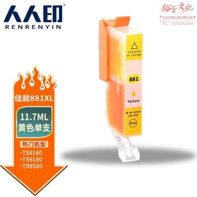 首页 > 办公用品 > 墨水 > 人人印 CLI-881XL-Y黄色墨盒 适用佳能Canon TS5180 TS6180 TS8180 TS9180 TR8580打印机墨盒 墨水 SKU:yzwhyp306571