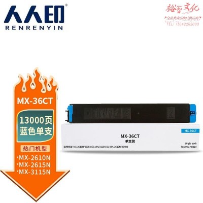 首页 > 办公用品 > 墨粉盒 > 人人印MX-36CT蓝色粉盒适用夏普SHARP MX-2618NC 3118NC 3618NC 2648NC 3148NC 3648NC墨盒墨粉盒碳粉 SKU:yzwhyp306622