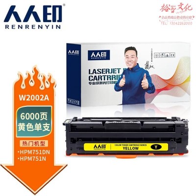 人人印 W2002A 黄色硒鼓 适用惠普HP Color Laser JET ENT M751dn打印机硒鼓 M751n墨盒 SKU:lfhc500574