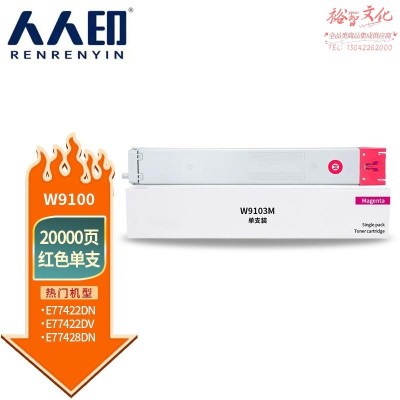 人人印 适用惠普MFP E77422dn E77428dn复印机粉盒硒鼓W9100MC墨盒碳粉仓 W9100MC粉盒红色 SKU:yzwhyp306705