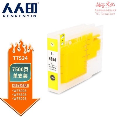 人人印 T7534黄色墨盒 适用爱普生Epson WF-6093 WF-6593 WF-8093 WF-8593打印机墨盒墨水 SKU:lfhc500722