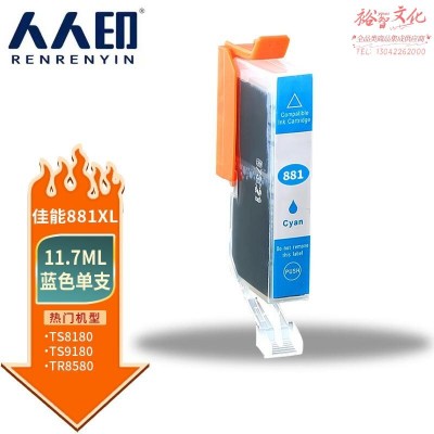 首页 > 办公用品 > 喷墨盒 > 人人印 CLI-881XL-C蓝色墨盒 适用佳能Canon TS5180 TS6180 TS8180 TS9180 TR8580打印机墨盒 墨水 SKU:yzwhyp306884
