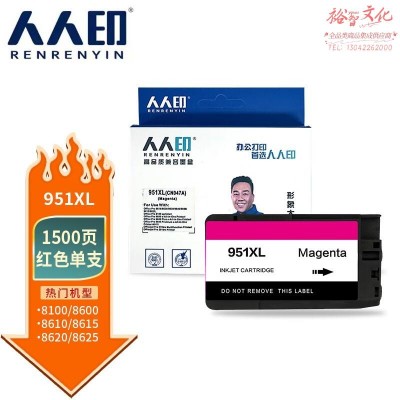 人人印 951XL M 红色墨盒 适用惠普Officejet Pro 8100/8600 Plus打印机墨盒硒鼓粉盒 SKU:lfhc500846