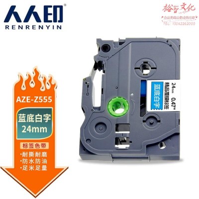 人人印 标签机色带 不干胶标签打印机打印纸 办公线缆机房平面原装标签带标签 AZE-Z555 蓝底白字24mm/个 SKU:lfhc500873