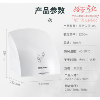 英特汉莎(interhasa)全自动感应干手器 烘手机 卫生间吹手烘干机YTA905 白 SKU:yzwhyp104213