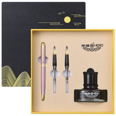 英雄(HERO)1520绒砂多彩细尖铱金钢笔/特细钢笔/美工笔 三合一 办公 墨水 套装 粉色