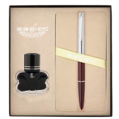 英雄(HERO)100红色半钢(14K)金尖钢笔墨水 金笔套装