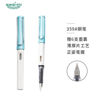 英雄(HERO)359A正姿 铱金钢笔签字笔 薄厚片工艺铱金笔尖(赠6支墨囊) 蓝白EF尖