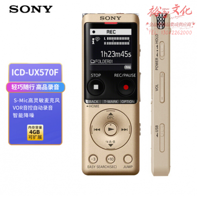 索尼(SONY) ICD-UX570F 数码录音笔 降噪 自动录音 AB复读 金色 SKU:yzwhyp307932