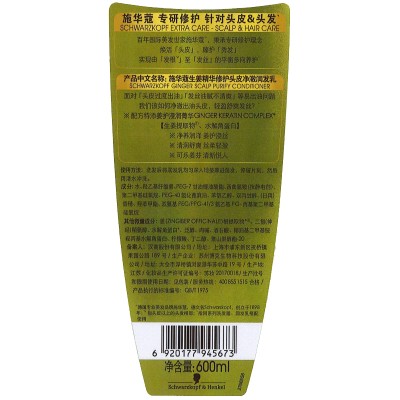 施华蔻(Schwarzkopf)生姜精华修护头皮净澈润发乳400ml (新老包装随机发) SKU:yzwhyp201283