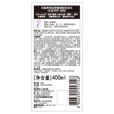吕(Ryo)紫吕强韧发根长效控油洗发水400ml*2【新老包装随机发货】 SKU:yzwhyp201382