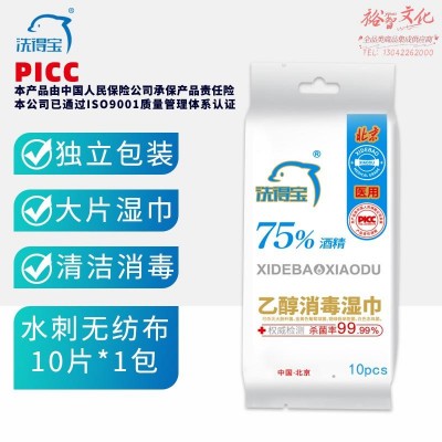 洗得宝 75%酒精湿巾 一次性消毒酒精棉片大号 单片独立包装 免洗洗手消毒液湿巾 10片 SKU:yzwhyp308036