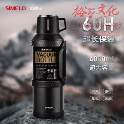 SIMELO施美乐户外保温壶 大容量车载旅行水壶304不锈钢保温瓶 4.0L星空黑 SKU:yzwhyp308506