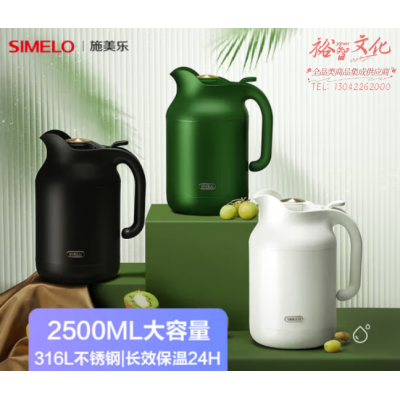 SIMELO施美乐保温壶家用大容量 热水瓶316不锈钢水壶迎宾北欧 2.5L雅致白 SKU:yzwhyp308538