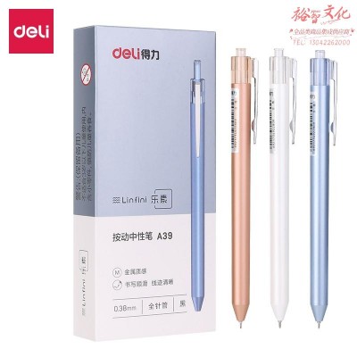 得力A39 按动中性笔0.38mm全针管(黑) SKU:yzwhyp600139
