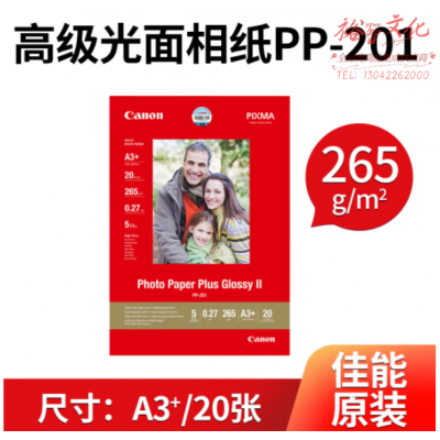 首页 > 纸及纸质品 > 纸及纸板(不包含复印纸) > 佳能(Canon) 原装高级光面照片纸PP-201喷墨打印机A3加大相片纸 高级光面照片纸II A3+(20张/包) SKU:yzwhyp308667