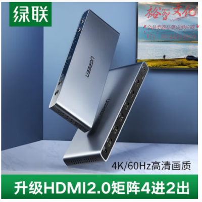 首页 > 广播、电视、电影设备 > 组合音像设备 > 会议、广播及音乐欣赏系统 > 绿联 HDMI矩阵4进2出HDMI2.0分配器切换器四进二出 3D视频切屏器 支持4K/60HZ 黑色 SKU:yzwhyp600172