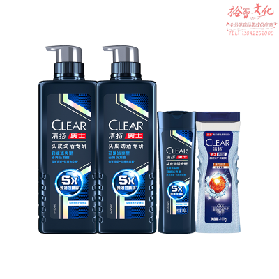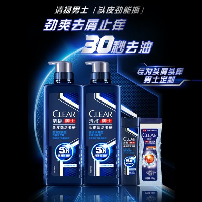 清扬(CLEAR)男士头皮劲能瓶专研5倍冰爽型洗发水570g*2+100g*2 去屑C罗洗头膏 SKU:yzwhyp201426