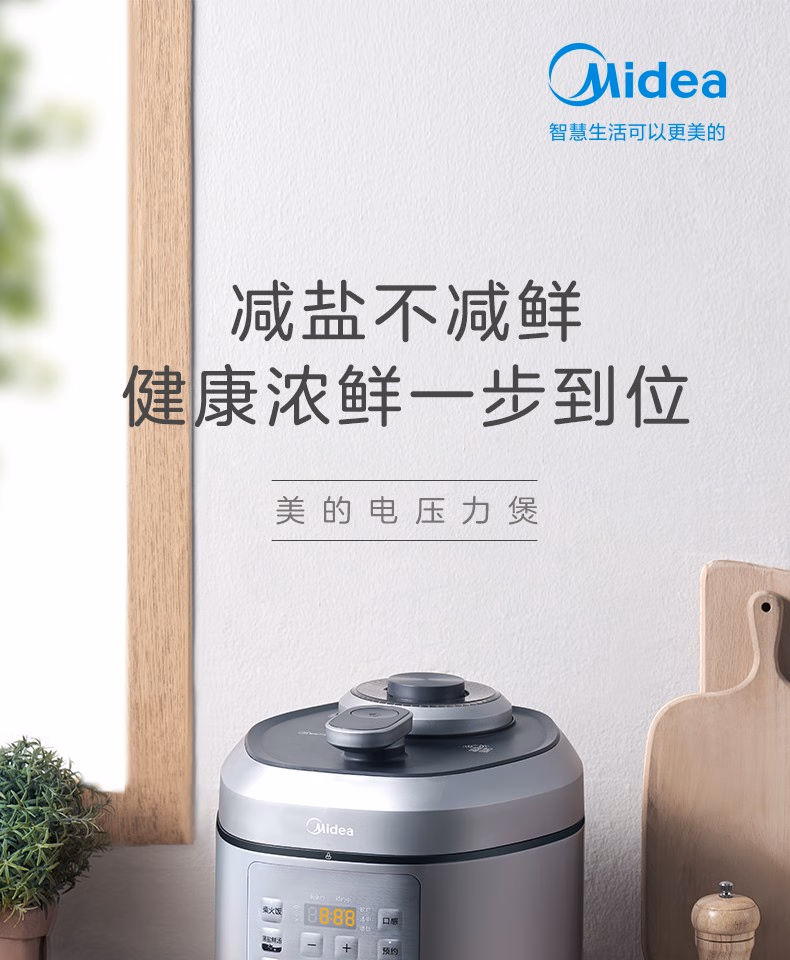 美的EYL5040 不锈钢内胆电压力锅 5L底盘加热多功能防溢 SKU:yzwhyp600251