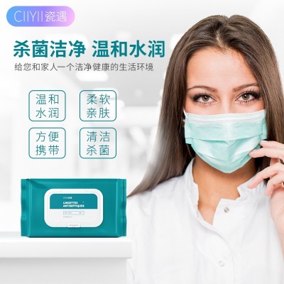 瓷遇Ciiyii杀菌湿巾80抽 杀菌洁肤卫生纸品湿纸巾带盖 SKU:yzwhyp201502