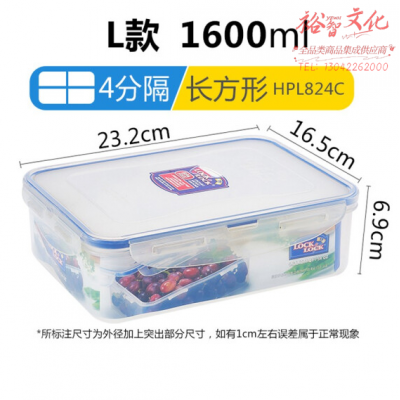 乐扣乐扣 HPL824C四分隔保鲜盒 微波炉便当盒厨房储物盒饭盒 L款-长方形1600ml SKU:yzwhyp308938