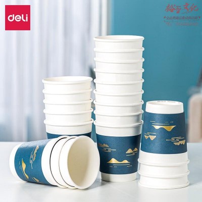 得力(deli)双层一次性纸杯 烫金压纹咖啡杯 商务招待厚纸杯 280ml 20只分享装 蓝色19214 SKU:yzwhyp201557