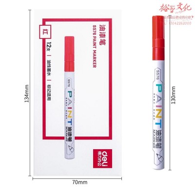 得力(deli) 12支/盒 S576油漆笔小号DIY相册涂鸦画衣服鞋子记号笔轮胎笔持久不脱色油性笔红色 SKU:yzwhyp201560