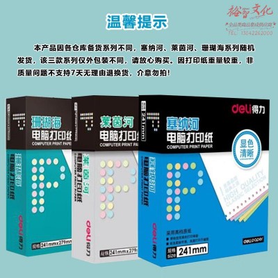 得力(deli)高档莱茵河 三联整张撕边电脑打印纸 白色针式打印纸(241-3S色序:全白1000页/盒) SKU:yzwhyp201630