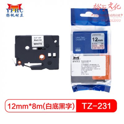 扬帆耐立 标签带 12mm标签纸色带 TZ-231 适用兄弟标签机色带 12mm白底黑字 TZ-231 SKU:yzwhyp104577
