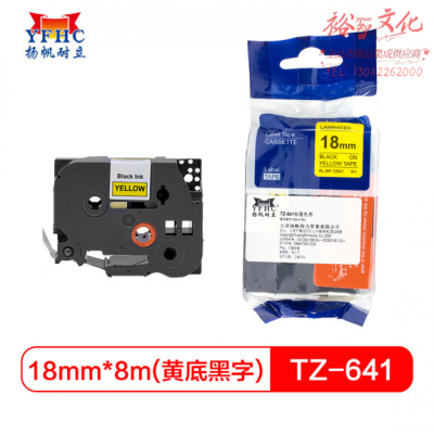 扬帆耐立 标签带 标签纸色带 适用兄弟标签机色带 18mm黄底黑字 TZ-641 SKU:yzwhyp104583