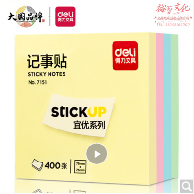 得力 400页4色 76*76mm 简约便利贴便签纸便签本N次贴7151 SKU:yzwhyp104586