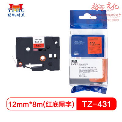 扬帆耐立 标签带 标签纸色带 适用兄弟标签机色带 12mm红底黑字 TZ-431 货号:WY SKU:yzwhyp104591